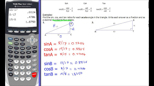 Sine θ = opposite/hypotenuse cosine θ = adjacent/hypotenuse tangent θ = opposite/adjacent in order to calculate the sine or the cosine or the tangent i need to know 3 sides of a right triangle.